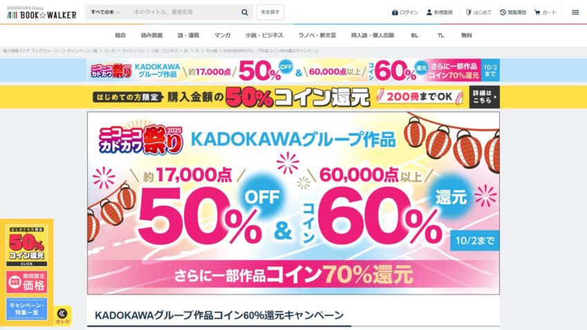 BOOK☆WALKERにてKADOKAWAのライトノベル・新文芸が50%オフ 対象15,000点にクーポン配布中